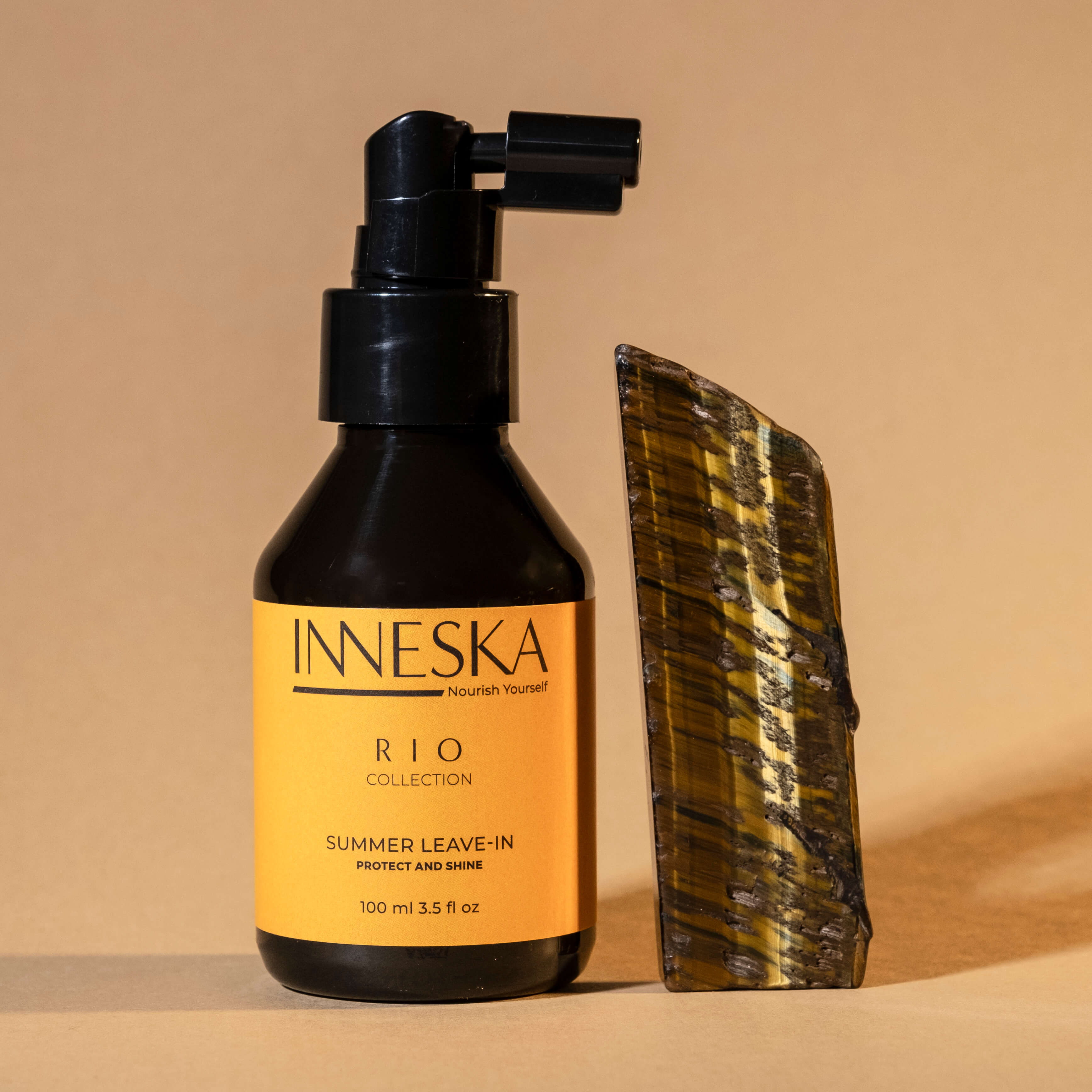 The RIO line, with shampoo, mask and no-rinse treatment, celebrates the wild beauty of the beaches of Rio de Janeiro. The intense sun and salty sea can be a challenge for hair, but INNESKA maintains its vibrancy and shine.